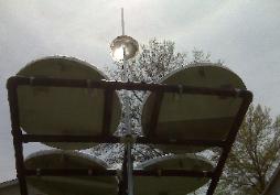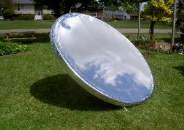 | Best Cost Concentration- Solar energy is plentiful, but diffuse. The concentration of solar energy enables a wide array of applications, including industrial steam, process heating, air conditioning, sterling engines, concentrating photovoltaics, etc. Solar concentrating systems also offer the hope of being the most cost-effective method of capturing and utilizing solar energy, but the fact remains that traditional combustion-based generation of thermal and electrical energy is still considerably less expensive for the typical industrial user. One method of closing the cost gap between traditional and solar power generation is though the use of film-based reflective materials, as opposed to traditional glass mirrors. The first patents for this technology were allowed in the late 1960's, and several systems were developed over the following 2 decades. A large field of mirror film trackers with integral Sterling engines was placed in southern California by LaJet/Cummings in the early 1990's. The site was abandoned after brief operation, primarily because of poor durability of the film material made by 3M Corp., who then abandoned the manufacture of reflective film. Also, to prevent wrinkling of the film, an underlayment of stainless steel sheet was typically used by designers, which increased the cost and weight of the sun-tracking structures. The combination of dish weight and heavy sterling engines required a heavy tracking structure. Dish/Engine design settled on glass mirror reflectors, which again required increased weight of the sun-tracking structures. Better reflective film materials were researched at NREL, and at Reflectech Solar, now part of Skyfuels/Sunshine Kadi Group. Film durability has improved significantly, and will likely continue to improve. ABF Solar's technology uses no underlayment material, but instead uses a patented floating batten and solar tensioning systems to inhibit wrinkling. A lightweight yet strong dish design enables a very low mass for the tracking structure to move, but the film must still survive periodic high winds. ABF Solar has developed a weathervaning stowage mode which protects the dishes from high wind and hail events. The prototype survived 9 years prior to failing last winter. An improved tracker design will provide a minimum of 25 years of service. A big advantage of vacuum deforming film is the ability to dynamically adjust focal length, which offers flexibility in implementation, and also provides the ability to quickly return dishes to a safe unfocused condition in the event that tracking control is lost. Looking for Partners We are looking for a user/partner to build a 20KW dish-thermal system: Do you have a year-round need for hot water or low pressure steam? Are you located in a region with good solar resource? Do you have an interest in participating in the development and testing of the next-generation of high-energy solar systems? Intellectual property of new developments will be shared. Expressions of interest can be forwarded to Doug Simmers at www.doug@abetterfocus.com. |